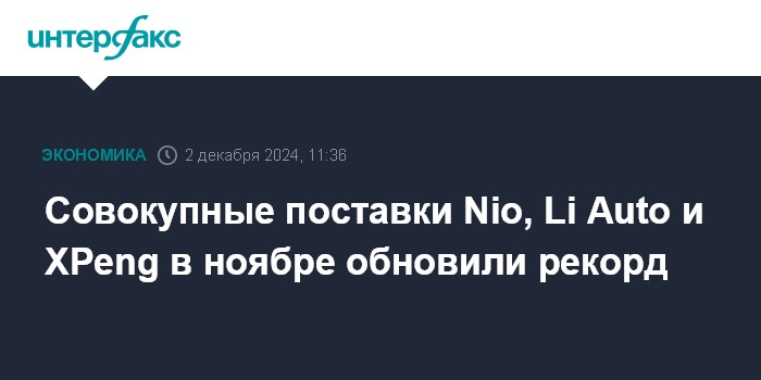 Совокупные поставки Nio, Li Auto и XPeng в ноябре обновили рекорд