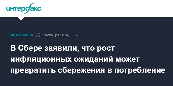 В Сбере заявили, что рост инфляционных ожиданий может превратить сбережения в потребление