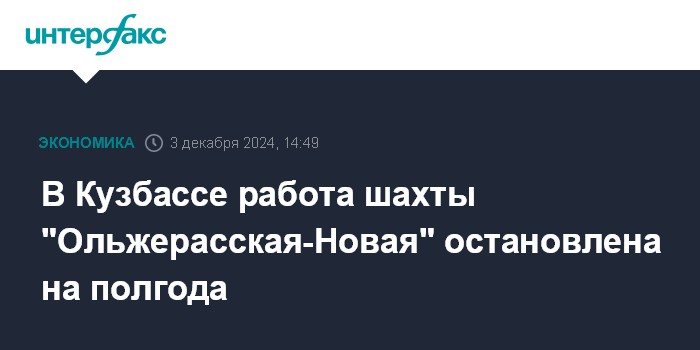 3 декабря в "Южном Кузбассе" "Интерфаксу" сообщили, что решение о приостановке шахты "Ольжерасская-Новая" было принято в октябре 2024 года "в связи с нерентабельностью добычи энергетического угля (марка Г) подземным способом в текущих рыночных условиях".