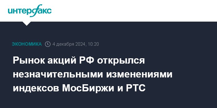 Рынок акций РФ открылся незначительными изменениями индексов МосБиржи и РТС