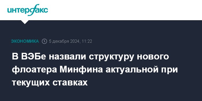 Москва. 5 декабря. INTERFAX.RU - Структура нового флоатера, с которым Минфин РФ вышел на рынок на этой неделе, актуальна при нынешней конъюнктуре, считает зампред ВЭБа Константин Вышковский.