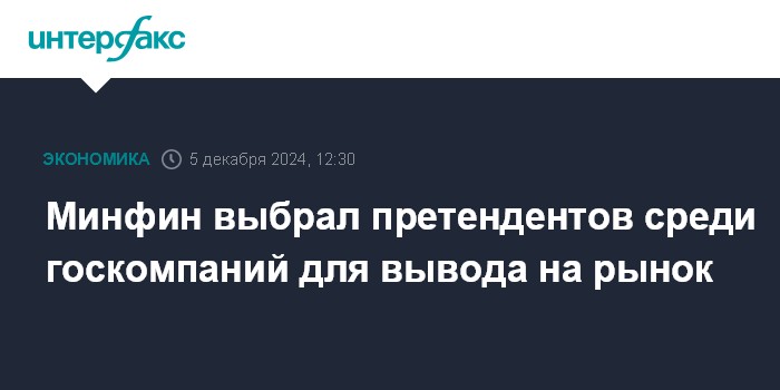 Москва. 5 декабря. INTERFAX.RU - Минфин РФ выбрал среди государственных компаний группу претендентов для потенциального вывода на фондовый рынок, ЦБ рекомендует им основательно подготовиться к будущим сделкам, постепенно формируя публичную историю.