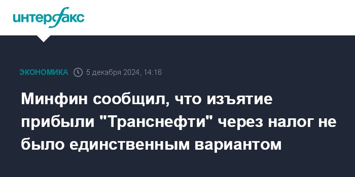 Минфин сообщил, что изъятие прибыли "Транснефти" через налог не было единственным вариантом