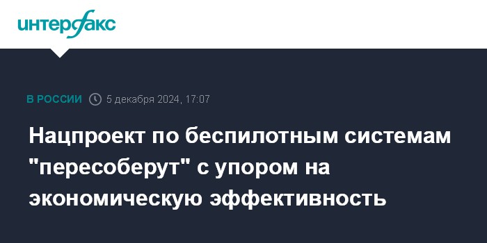 Нацпроект по беспилотным системам "пересоберут" с упором на экономическую эффективность