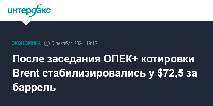 Москва. 5 декабря. INTERFAX.RU - Котировки нефти стабилизировались у уровней закрытия предыдущей сессии в четверг после публикации итогов министерского заседания ОПЕК+, на котором было принято решение о дальнейшей отсрочке планирующегося увеличения добычи.