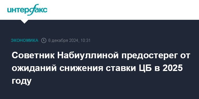 Советник Набиуллиной предостерег от ожиданий снижения ставки ЦБ в 2025 году