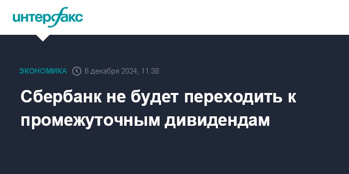 Сбербанк не будет переходить к промежуточным дивидендам