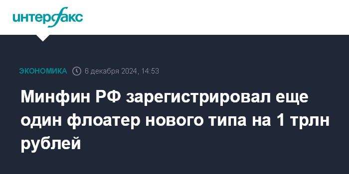 Минфин РФ зарегистрировал еще один флоатер нового типа на 1 трлн рублей