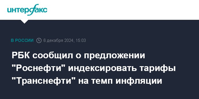 РБК сообщил о предложении "Роснефти" индексировать тарифы "Транснефти" на темп инфляции
