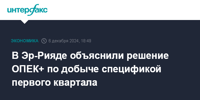 В Эр-Рияде объяснили решение ОПЕК+ по добыче спецификой первого квартала