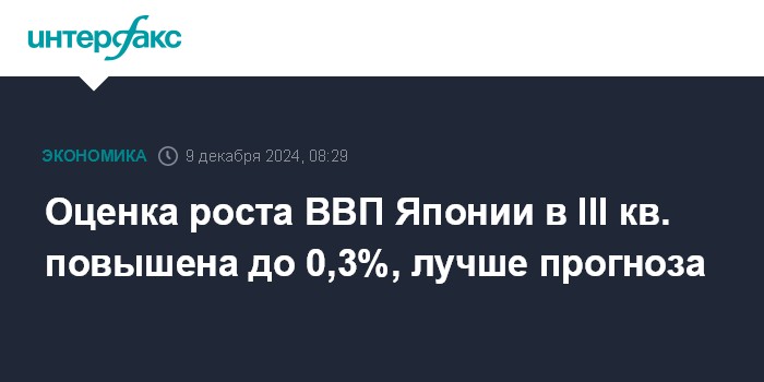 Оценка роста ВВП Японии в III кв. повышена до 0,3%, лучше прогноза
