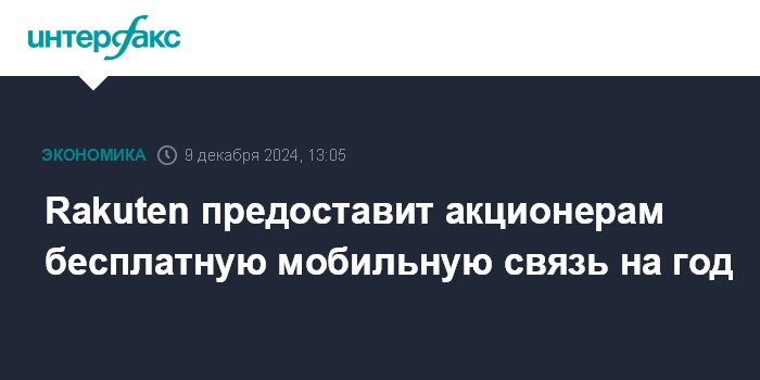 Москва. 9 декабря. INTERFAX.RU - Японская IT-компания Rakuten Group предоставит акционерам бесплатные мобильные тарифные планы сроком на один год, передает Bloomberg.