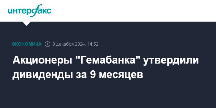 Акционеры "Гемабанка" утвердили дивиденды за 9 месяцев