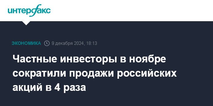 Частные инвесторы в ноябре сократили продажи российских акций в 4 раза