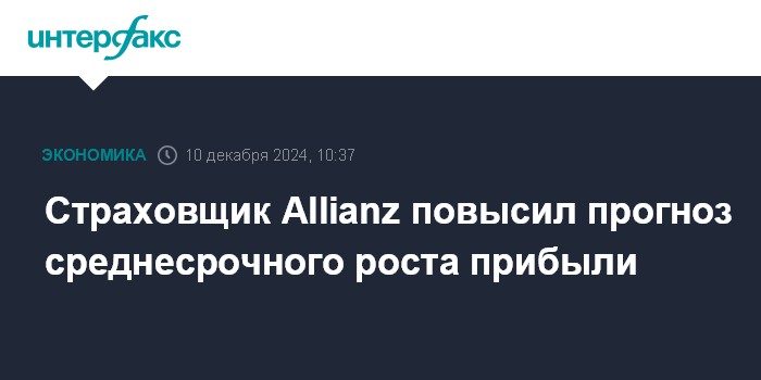 Москва. 10 декабря. INTERFAX.RU - Германская страховая компания Allianz SE улучшила среднесрочный прогноз для темпов роста прибыли, а также пообещала повысить выплаты акционерам.