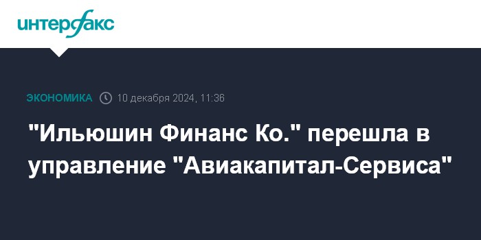 Москва. 10 декабря. INTERFAX.RU - Лизинговая компания "Ильюшин Финанс Ко." (ИФК) перешла в управление другой подконтрольной "Ростеху" лизинговой структуры - "Авиакапитал-Сервиса", свидетельствуют данные ЕГРЮЛ.