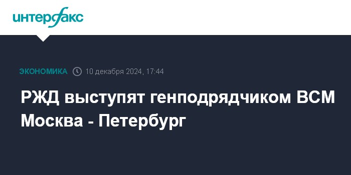 РЖД выступят генподрядчиком ВСМ Москва - Петербург
