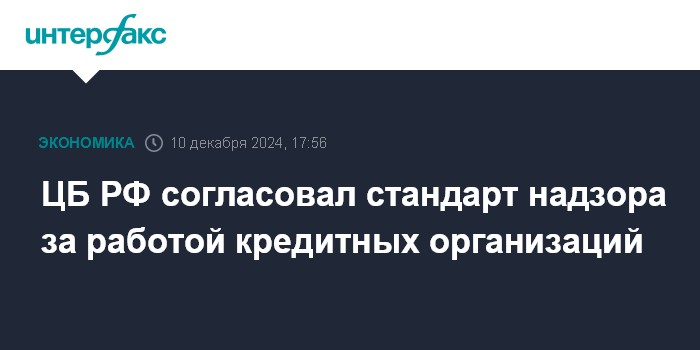 ЦБ РФ согласовал стандарт надзора за работой кредитных организаций