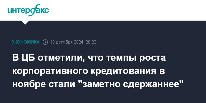 В ЦБ отметили, что темпы роста корпоративного кредитования в ноябре стали "заметно сдержаннее"