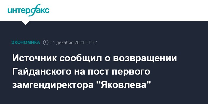 Источник сообщил о возвращении Гайданского на пост первого замгендиректора "Яковлева"