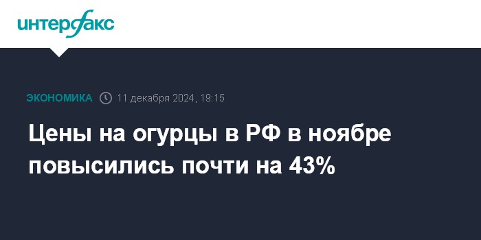 Цены на огурцы в РФ в ноябре повысились почти на 43%