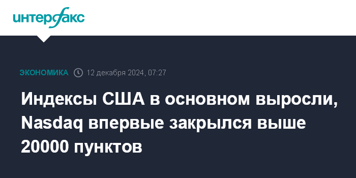Индексы США в основном выросли, Nasdaq впервые закрылся выше 20000 пунктов
