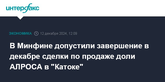 Москва. 12 декабря. INTERFAX.RU - Сделка по продаже доли "АЛРОСА" в ангольской алмазодобывающей компании "Катока" может быть завершена уже в декабре, сообщил журналистам заместитель финансов Алексей Моисеев.