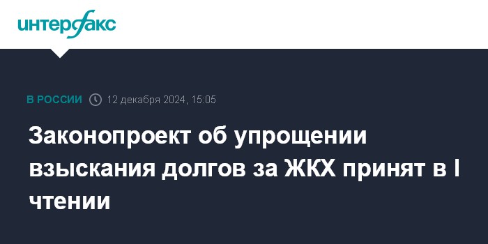 Москва. 12 декабря. INTERFAX.RU - Госдума приняла в первом чтении законопроект, который позволяет взыскивать долги за жилищно-коммунальные услуги без обращения в суд, с использованием исполнительной надписи нотариуса.