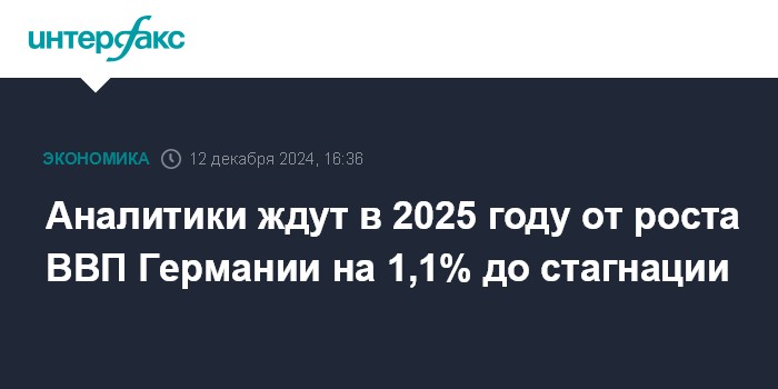 Аналитики ждут в 2025 году от роста ВВП Германии на 1,1% до стагнации
