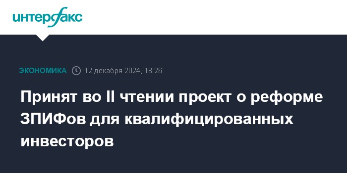 Москва. 12 декабря. INTERFAX.RU - Госдума приняла во втором чтении законопроект по донастройке работы закрытых паевых инвестиционных фондов (ЗПИФ) для квалифицированных инвесторов.