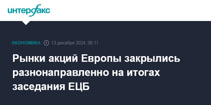 Москва. 13 декабря. INTERFAX.RU - Фондовые индексы крупнейших стран Западной Европы завершили торги в четверг с разнонаправленными изменениями, инвесторы оценивали итоги последнего в этом году заседания Европейского центрального банка (ЕЦБ).