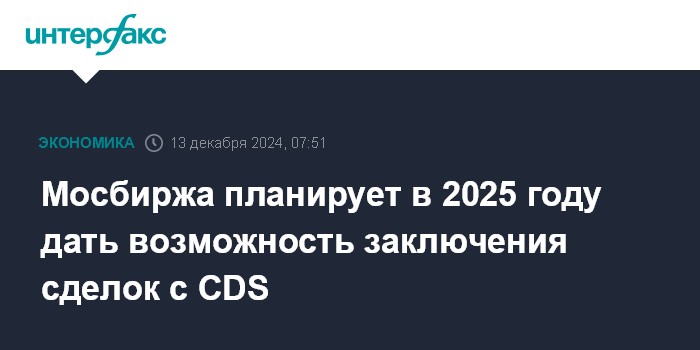 Мосбиржа планирует в 2025 году дать возможность заключения сделок с CDS