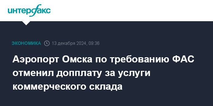 Аэропорт Омска по требованию ФАС отменил допплату за услуги коммерческого склада