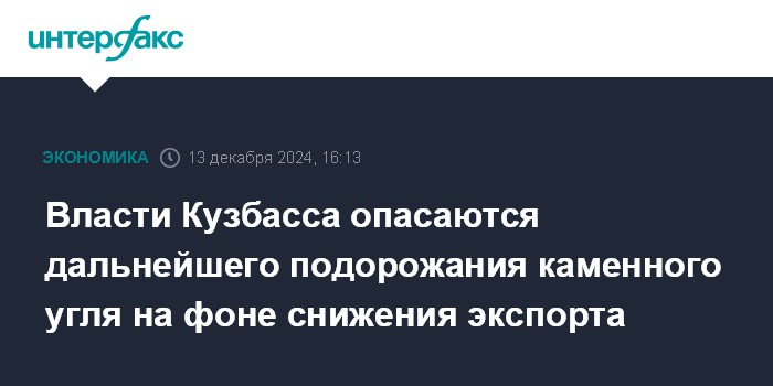Москва. 13 декабря. INTERFAX.RU - На российском рынке в 2024 году цена каменного угля на фоне снижения экспорта уже выросла на 10%, ограничение экспорта еще подтолкнет цены вверх, считает первый замгубернатора - председатель правительства Кемеровской области Андрей Панов.