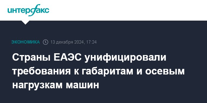 О том, что страны ЕАЭС планируют в 2024 году завершить согласование универсального подхода к параметрам автомобильного транспорта, сообщалось в июне этого года. На тот момент страны завершили внутригосударственные согласования, подписать соглашение планировалось в III квартале текущего года. ЕЭК отмечала, что на автомобильный транспорт приходится более половины общего объема перевозок грузов в странах ЕАЭС.