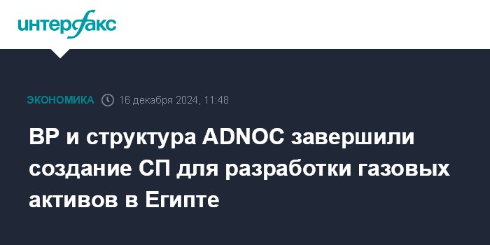 Москва. 16 декабря. INTERFAX.RU - BP и XRG - подразделение госкомпании ОАЭ Abu Dhabi National Oil Co. (ADNOC) завершили создание совместного предприятия Arcius Energy, которое на начальном этапе будет заниматься разработкой газовых активов в Египте.