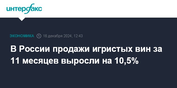 В России продажи игристых вин за 11 месяцев выросли на 10,5%