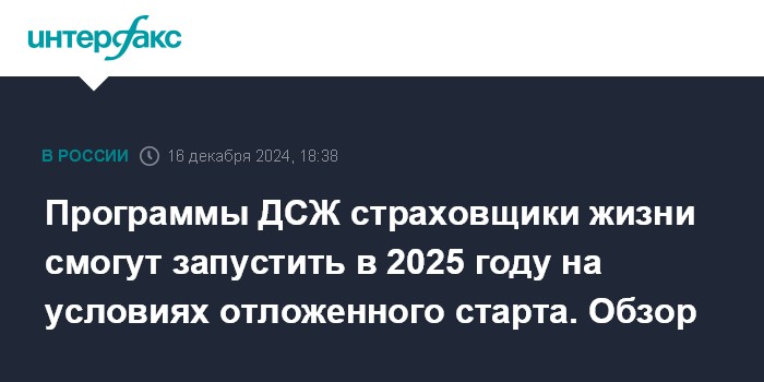 Программы ДСЖ страховщики жизни смогут запустить в 2025 году на условиях отложенного старта. Обзор