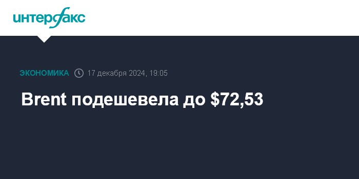 К 18:48 по Москве февральские фьючерсы на Brent дешевели на лондонской бирже ICE Futures на $1,38 (1,87%) - до $72,53 за баррель. Январские фьючерсы на WTI к этому времени дешевели на бирже NYMEX на $1,43 (2,02%) - до $69,28 за баррель.