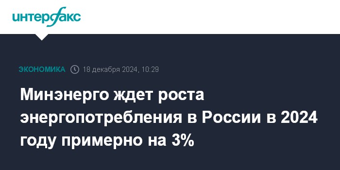 Минэнерго ждет роста энергопотребления в России в 2024 году примерно на 3%