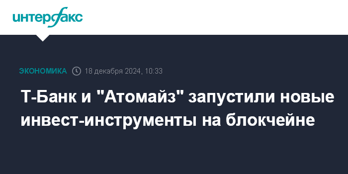 Т-Банк и "Атомайз" запустили новые инвест-инструменты на блокчейне