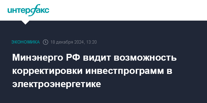 Минэнерго РФ видит возможность корректировки инвестпрограмм в электроэнергетике