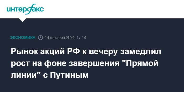 Рынок акций РФ к вечеру замедлил рост на фоне завершения "Прямой линии" с Путиным