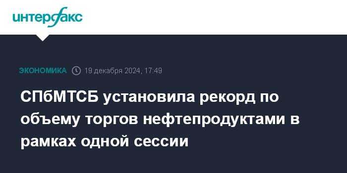 СПбМТСБ установила рекорд по объему торгов нефтепродуктами в рамках одной сессии