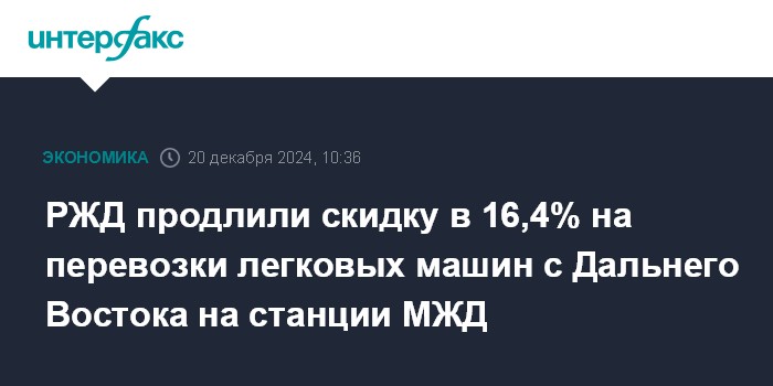 Также продлены скидка в размере до 50% на внутрироссийские перевозки грузов на короткие расстояния; на 20% - на перевозки минеральной воды и газированных напитков со станций Иркутск и Батарейная на подмосковную станцию Павшино; на 17,5% - на перевозки грузов на вагонах-транспортерах и на 50% - на их порожний пробег (продлена до конца 2027 года).