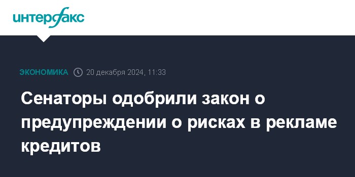 Сенаторы одобрили закон о предупреждении о рисках в рекламе кредитов