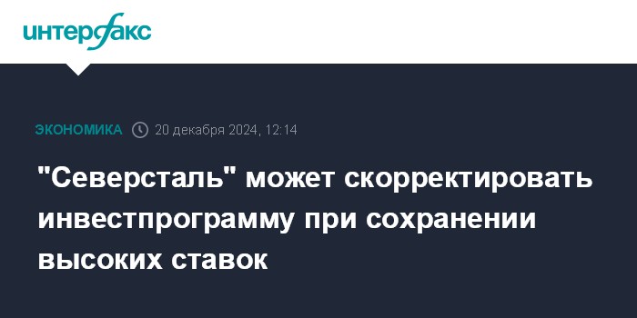 Москва. 20 декабря. INTERFAX.RU - "Северсталь" может пересмотреть сроки и масштабы ряда проектов, реализация которых запланирована на 2025 год в рамках утвержденной стратегии 2024-2028, при сохранении высоких процентных ставок и охлаждении спроса со стороны ключевых потребителей металла.
