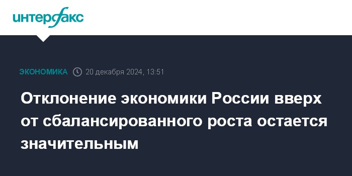 Отклонение экономики России вверх от сбалансированного роста остается значительным