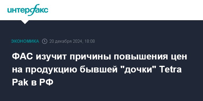 ФАС изучит причины повышения цен на продукцию бывшей "дочки" Tetra Pak в РФ