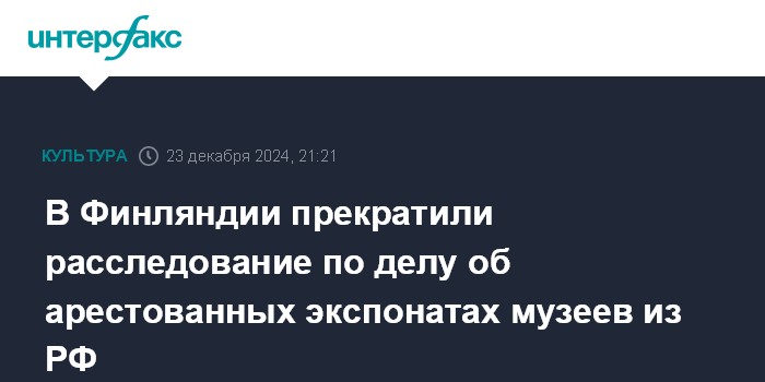 Москва. 23 декабря. INTERFAX.RU - В Финляндии завершено расследование по делу о российских произведениях искусства, арестованных таможней Финляндией весной 2022 года по подозрению в нарушении санкционных ограничений.